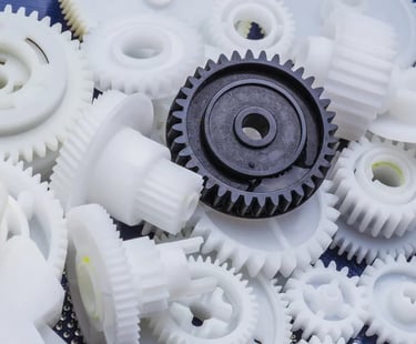 POM, PEEK, PTFE, nylon, ABS for prototypes and insulators.